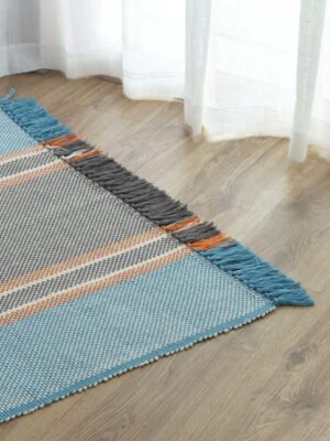 Handwoven Striped Cotton Rug – Blue & Orange