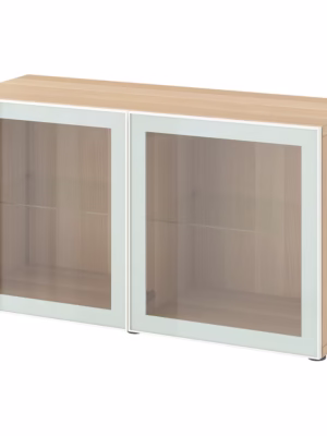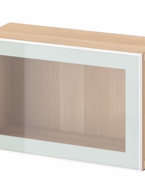Shelf Unit with Glass Door in White Stained Oak Effect and Glassvik Light Green