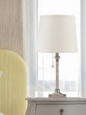 19″ LED Silver Metal Table Lamp with Beige Linen Drum Shade – Elegant Lighting for Home and Office